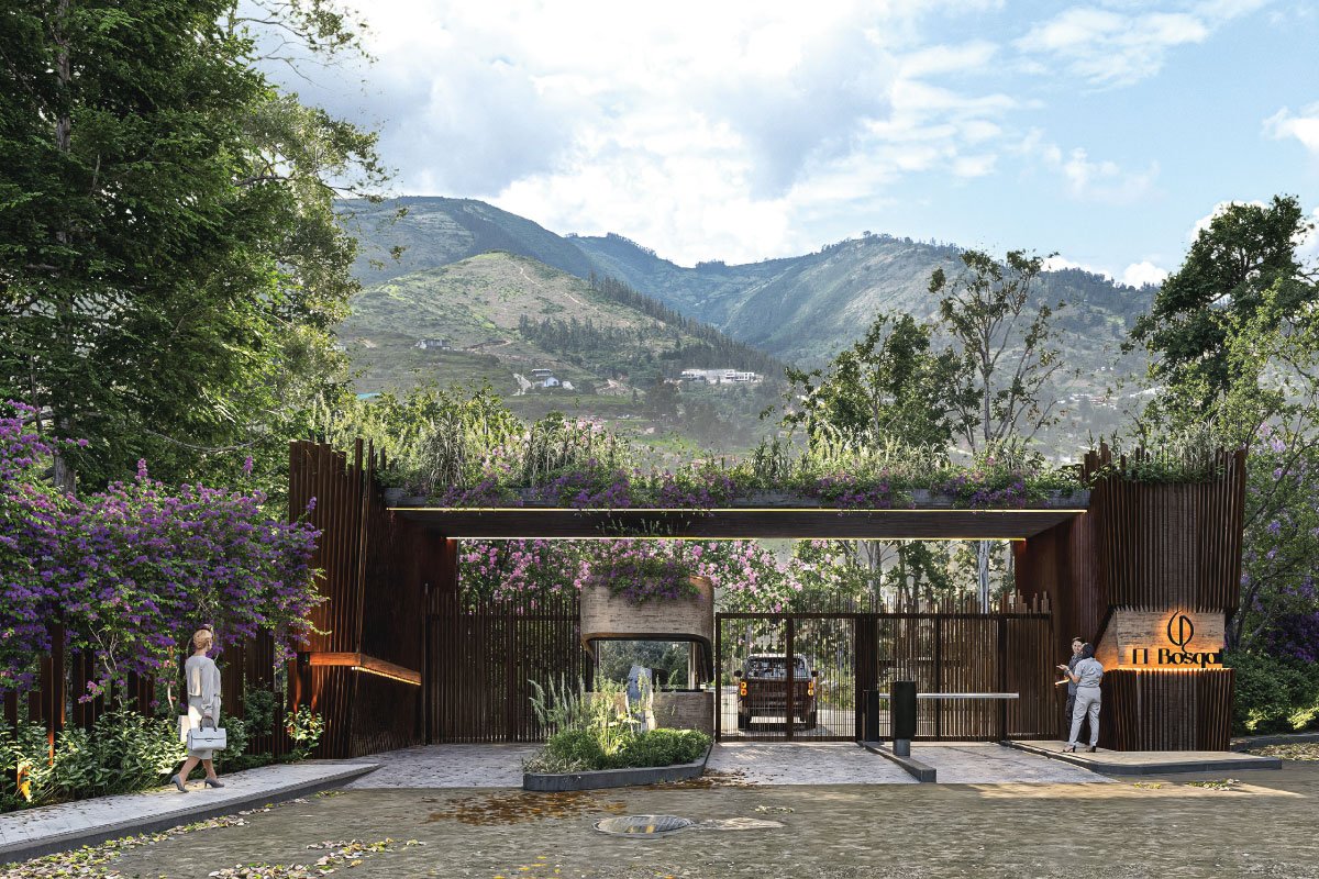 La entrada al Proyecto El Bosqal es una verdadera invitación a la armonía entre elegancia y naturaleza.